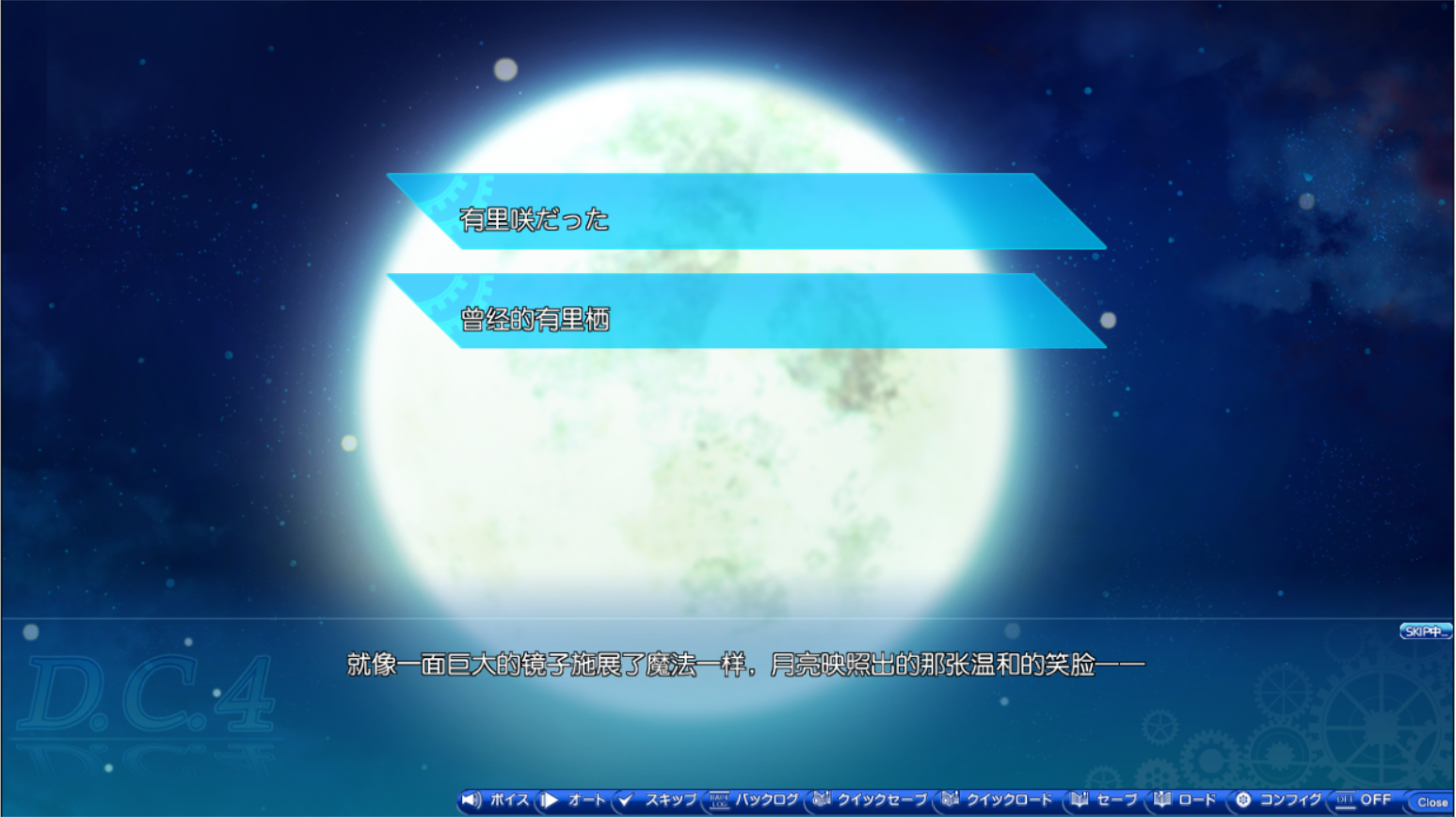 D.C.4它既没有D.C.的情怀与老资历,本身质量也很难算是上乘——并且还是个全年龄。放眼如今看来绝对称得上是群雄逐鹿的2019年,D.C.4的亮眼之处果然也就只有美工和声优阵容这两处而已了。